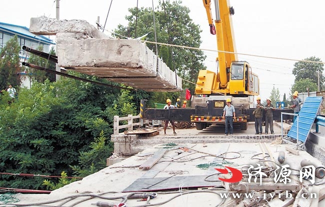 6月21日上午10點(diǎn)15分,隨著一側(cè)水泥欄桿被起重機(jī)吊離橋面,標(biāo)志著S243郭木線上的危橋——金鵝橋正式開始拆舊建新。施工現(xiàn)場被全面禁行。橋兩端圍滿了四里八鄉(xiāng)的群眾?!斑@橋一建好,我們出行就方便了。”坡頭鎮(zhèn)店留村村民黨春苗對(duì)記者說。