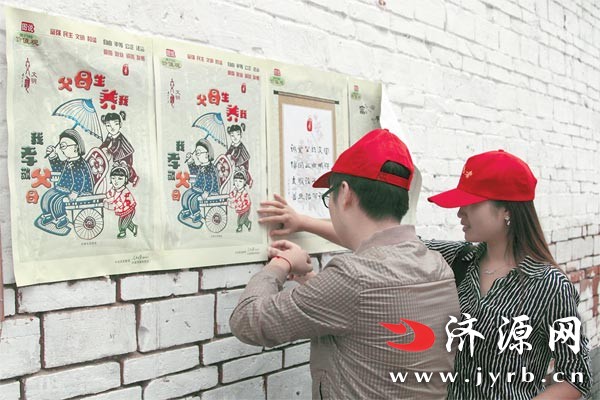 9 月25 日,志愿者進(jìn)入濟(jì)水街道各居委會(huì)張貼文明宣傳標(biāo)語(yǔ)。