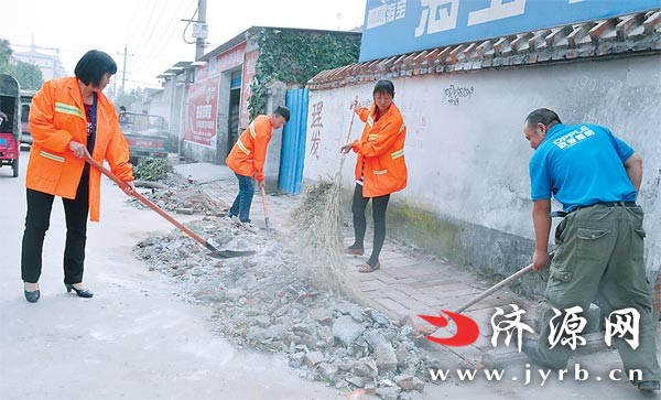 9 月26 日,沁園街道工作人員與環(huán)衛(wèi)工人一起在南夫人頭居委會(huì)清理垃圾。