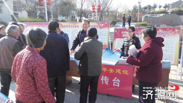 平安建設(shè)離不開宣傳。王屋鎮(zhèn)在宣傳車的基礎(chǔ)上,利用節(jié)日、鎮(zhèn)區(qū)集會等時期在鎮(zhèn)政府門前設(shè)立咨詢臺,發(fā)放平安宣傳資料。此外,王屋鎮(zhèn)還在高速路口、濟(jì)邵路沿線制作高標(biāo)準(zhǔn)平安宣傳墻體板面,提高了平安建設(shè)的知曉率。