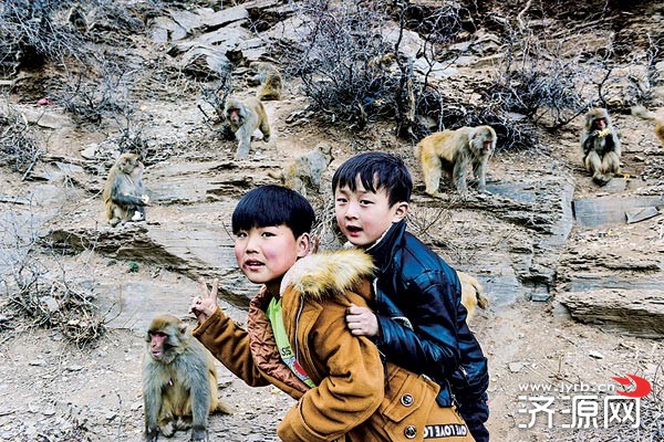 小朋友在猴山留念