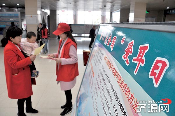 市殘聯(lián)的志愿者在市人民醫(yī)院宣講耳朵保健知識。
