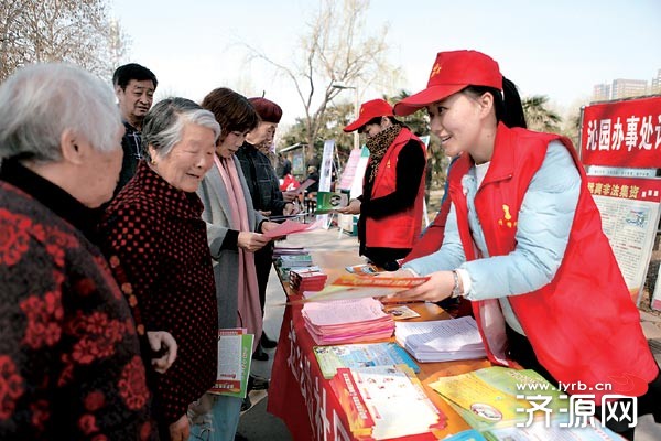 沁園街道的志愿者向市民宣傳法律、計生相關知識。