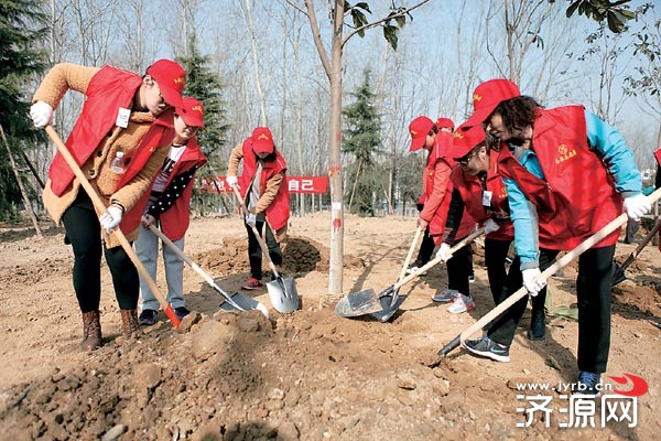 3月3日,玉泉街道辦事處的志愿者在植樹。