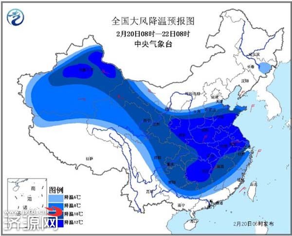 受強(qiáng)冷空氣影響,預(yù)計(jì)20日至22日,新疆、西北地區(qū)東部、西南地區(qū)東部、華北中南部、黃淮、江淮、江漢、江南、華南北部等地氣溫將下降8℃以上,部分地區(qū)超過12℃。西北地區(qū)東部和長(zhǎng)江中下游以北地區(qū)將伴有4~6級(jí)大風(fēng),東部海域?qū)⒂?~8級(jí)偏北風(fēng)。內(nèi)蒙古西部伴有沙塵天氣。中央氣象臺(tái)2月20日06時(shí)繼續(xù)發(fā)布寒潮藍(lán)色預(yù)警。
