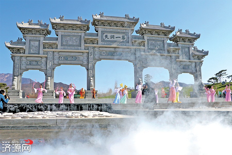 春風(fēng)送暖桃花開,賞景問道王屋山。3月25日,王屋山首屆“桃花女兒節(jié)”活動(dòng)在道境廣場(chǎng)精彩開幕。上午10點(diǎn)整,開幕式如約舉行,身著華麗衣服,裝扮成神話人物的演員們從道境廣場(chǎng)牌坊“現(xiàn)身”,隨著音樂翩翩起舞。如夢(mèng)如幻間,游客們恍若置身仙境,個(gè)個(gè)驚嘆不已。