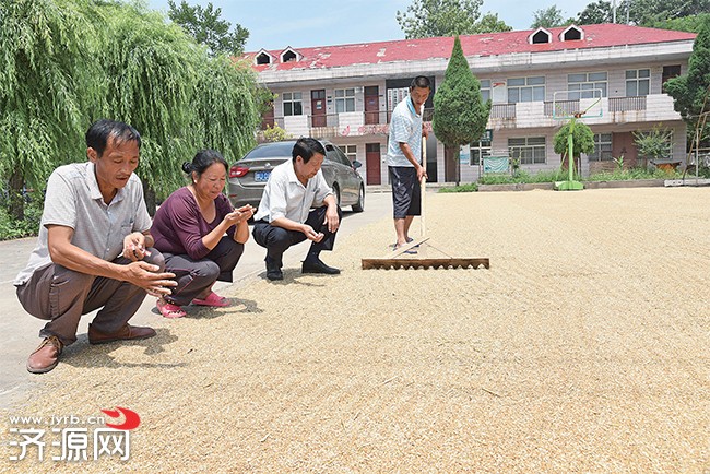 王明秀(右二)和村民談收成