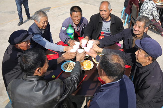 這邊洛峪新村節(jié)目演得火熱,那邊牛灣新村和西柴莊等村,由各村村委會舉行的重陽節(jié)老人宴活動也在進行著。據(jù)了解,重陽節(jié)期間,思禮鎮(zhèn)多個村委組織了花樣百出的關愛老年人活動,為當?shù)氐睦先怂腿ス?jié)日的祝福。