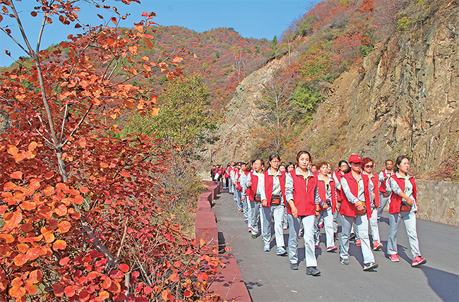 據(jù)市文旅集團副總經(jīng)理李慶軍介紹,王屋山的秋天是多彩的,僅紅葉的覆蓋面積就有數(shù)十平方公里,品種有黃櫨、槭樹、楓樹等,呈現(xiàn)不同的紅色,層次感十分明顯,給人以萬紫千紅的感覺。市文旅集團近三年來對王屋山景區(qū)道境廣場、360度全景索道、天壇極頂?shù)软椖窟M行綜合提升,使王屋山景區(qū)煥然一新。此次健步走活動就是讓大家感受王屋山景區(qū)的全新面貌,在漫山紅葉中享受健步走的快樂,也通過這種形式讓更多的人感受到道教第一洞天王屋山的美景與文化內(nèi)涵,為廣大游客送上一個集旅游、健身、休閑于一體的旅游盛宴。(文/圖 記者 李 浩 見習記者 趙新迪)