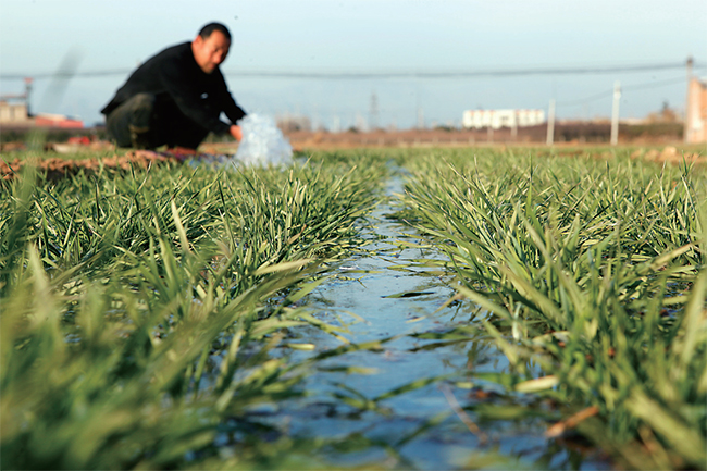 連日來,我市農(nóng)民搶抓農(nóng)時為小麥進行冬灌工作,確保小麥安全過冬。(記者 程子明 攝)