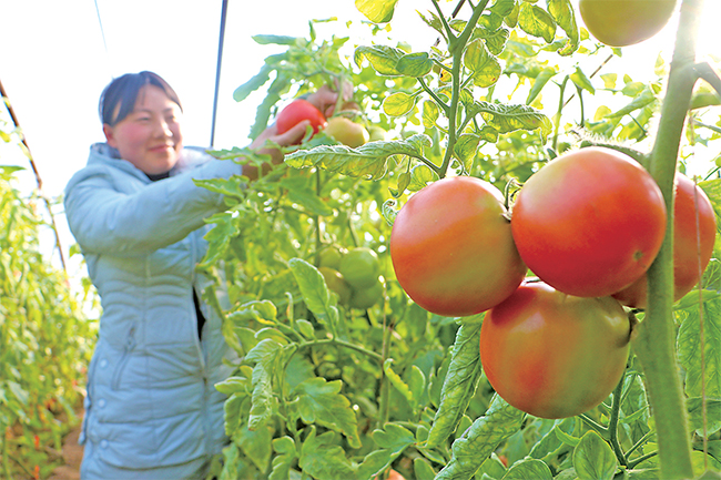1月10日,在軹城鎮(zhèn)的蔬菜大棚里,農(nóng)民在采摘西紅柿。