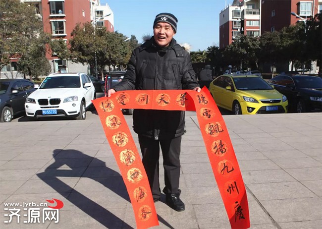 拿到春聯(lián)的群眾喜笑顏開