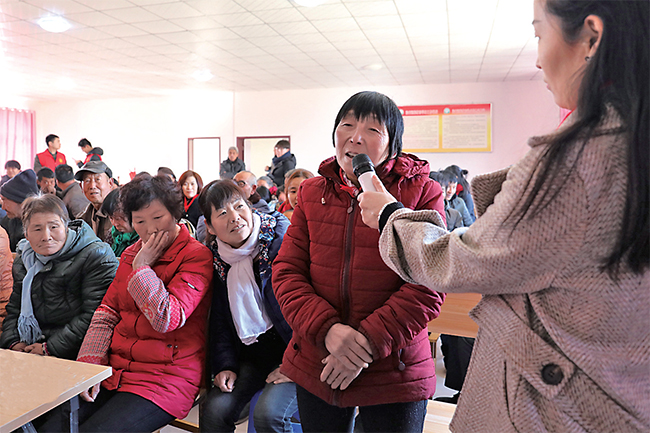 2月4日,王屋鎮(zhèn)清虛宮村道德模范李小鳳在道德講堂上分享自己的故事。