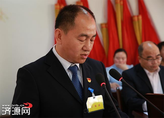 鎮(zhèn)人大主席李正軍作《鎮(zhèn)人大主席團工作報告》 記者 李鵬鵬/攝