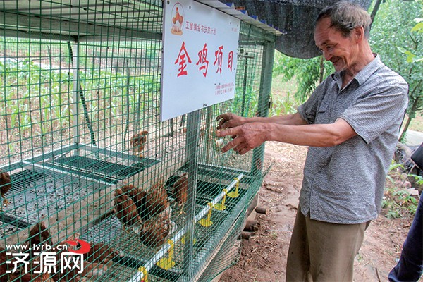 6月30日,王屋鎮(zhèn)政府派人把建雞舍的材料拉來(lái)并用一上午的時(shí)間就把雞舍給安裝好了。當(dāng)天下午,王屋鎮(zhèn)政府也把雞給他們送來(lái)了?!罢氲谜嬷艿?,還給我們發(fā)了80斤雞飼料?!崩先私榻B,“這些小母雞都有半大了,每只有1斤多重。”老人說(shuō),再喂兩個(gè)月就可以產(chǎn)蛋見(jiàn)收益了。