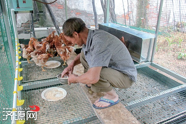 濟(jì)源晨報(bào)記者還沒(méi)走進(jìn)封門村賈秀英老人的家,就已在她家院子外看到了一個(gè)標(biāo)準(zhǔn)化雞舍。現(xiàn)已經(jīng)86歲的賈秀英拄著拐棍來(lái)到雞舍旁,介紹她家的雞。“現(xiàn)在政府給我們每戶發(fā)30只,還會(huì)補(bǔ)20只呢!”賈秀英笑著說(shuō),“政府把‘金雞’給了我們,我們就要盡力養(yǎng)好。”