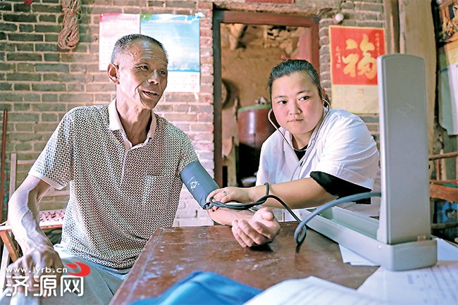 7月19日,在下冶鎮(zhèn)三教村,醫(yī)生為貧困戶做體檢。