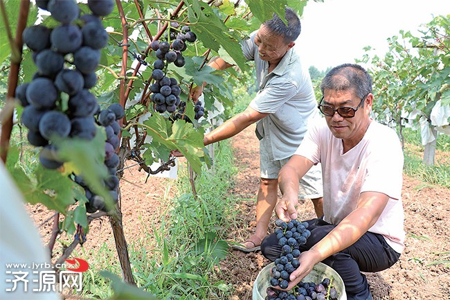 軹城鎮(zhèn)石板溝村大棚葡萄成熟 吸引游客采摘品嘗