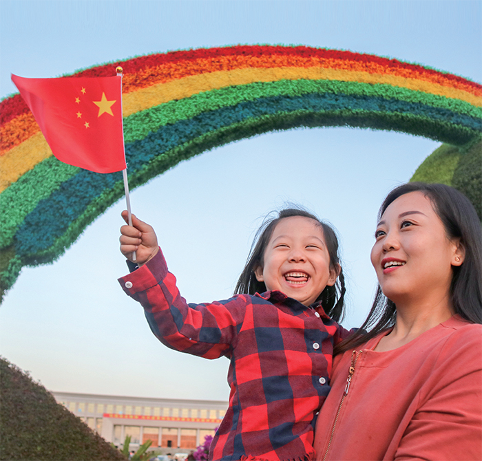 9月30日,世紀(jì)廣場百花斗艷,市民高興地拍照留念。為慶祝國慶佳節(jié)的到來,全市上下洋溢著濃濃的節(jié)日氣氛,一面面國旗在大街小巷迎風(fēng)飄揚(yáng),共同祝福偉大祖國母親生日快樂。(記者 王興輝 高玉婉 攝)
