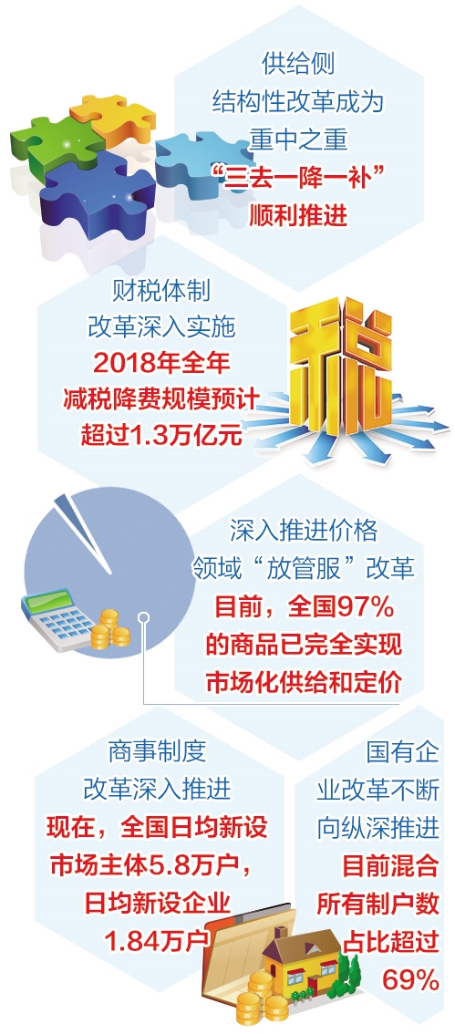 闖急流、涉險(xiǎn)灘、破藩籬,從群眾最期盼的領(lǐng)域改起,從制約經(jīng)濟(jì)社會(huì)發(fā)展最突出的問(wèn)題改起……全面深化改革5年來(lái),在以習(xí)近平同志為核心的黨中央堅(jiān)強(qiáng)領(lǐng)導(dǎo)下,圍繞處理好政府和市場(chǎng)關(guān)系,經(jīng)濟(jì)體制改革整體推進(jìn)、重點(diǎn)突破,激發(fā)發(fā)展動(dòng)力和創(chuàng)新活力的作用逐步顯現(xiàn),社會(huì)主義市場(chǎng)經(jīng)濟(jì)體制不斷完善。
