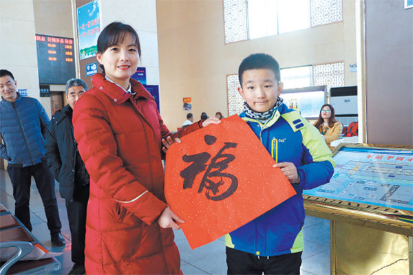 火車站工作人員送福