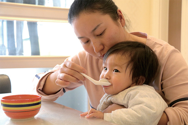 一位母親喂寶寶吃元宵