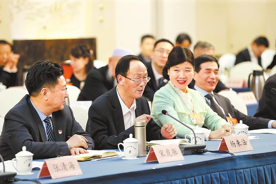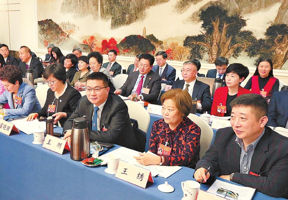 3月6日,出席十三屆全國人大二次會議的河南代表團代表們認真審議政府工作報告。本報記者郭宇攝