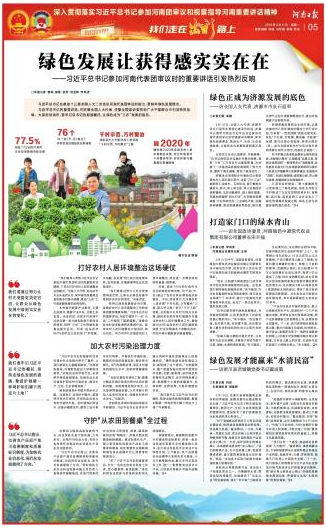 3月11日,《河南日?qǐng)?bào)》在5版兩會(huì)特刊“我們走在出彩路上”專欄中,以《綠色發(fā)展讓獲得感實(shí)實(shí)在在——習(xí)近平總書(shū)記參加河南代表團(tuán)審議時(shí)的重要講話引發(fā)熱烈反響》為題刊登了對(duì)全國(guó)人大代表、河南省濟(jì)源市市長(zhǎng)石迎軍的專訪內(nèi)容。