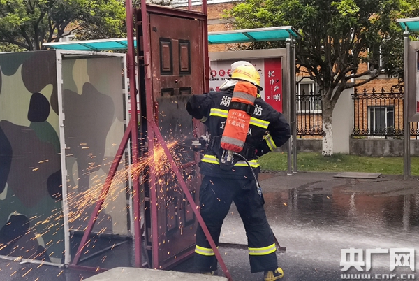 訓(xùn)練中,消防員在模擬救火。(央廣網(wǎng)記者 陳銳海 攝)