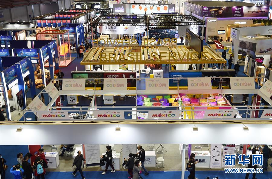 這是2018年11月10日,參觀者在上海舉行的首屆中國國際進口博覽會上參觀。新華社記者韓瑜慶攝