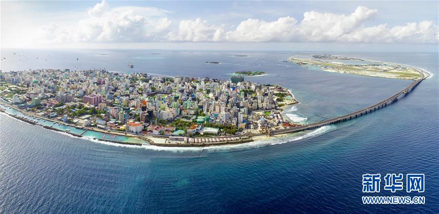 這是2018年8月22日拍攝的即將開通的中馬友誼大橋,中國援建的中馬友誼大橋連通馬爾代夫首都馬累和機場島。新華社發(fā)(王明亮攝)