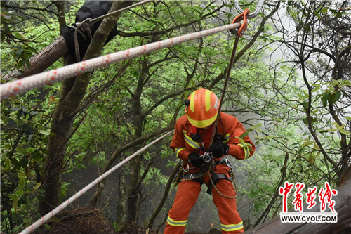 消防進行懸崖救助救援演練 中國青年報·中青在線見習記者。曾憲旭/攝