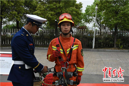 消防員講解繩索裝備 中國青年報·中青在線見習記者。曾憲旭/攝