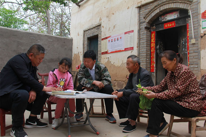 楊延武(左一)與村民攀談