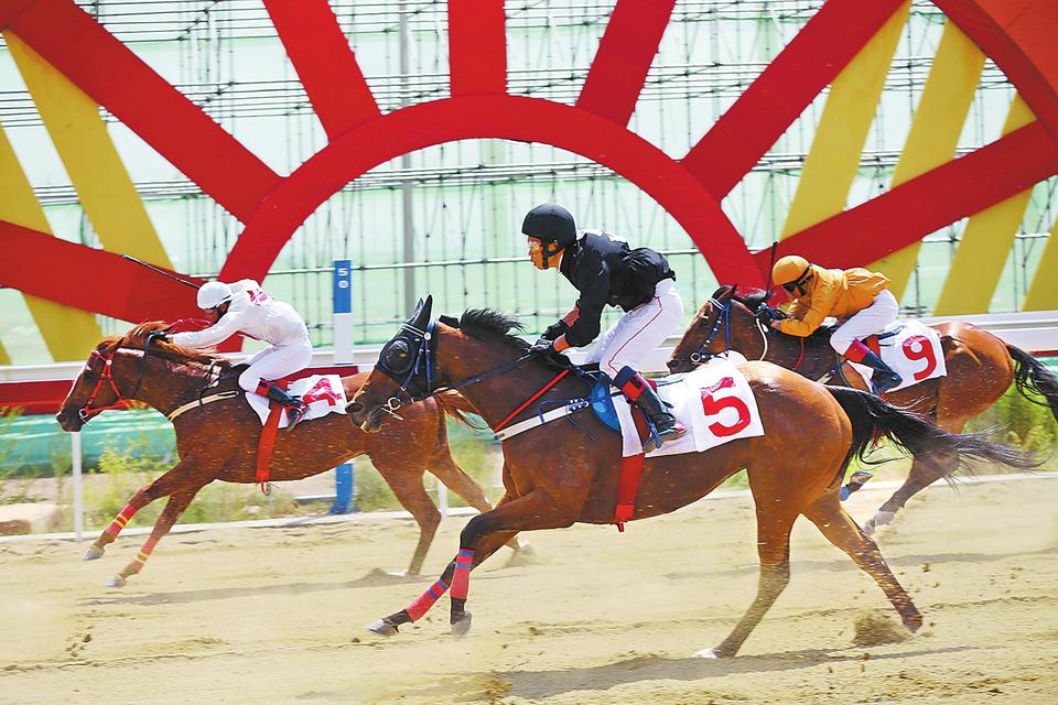 7月15日,隨著裁判一聲令下,馬蹄聲急,馬鬃飛舞,騎手們在賽道上馳騁。記者鄧放攝