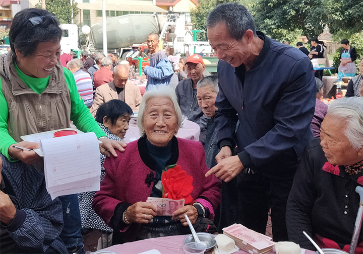 10月7日,在思禮鎮(zhèn)澗北村舉行的重陽節(jié)敬老活動(dòng)中,91歲的孔繁英老人接過村干部發(fā)放的慰問金后開心地笑了。當(dāng)日,澗北村共有235位70歲以上(含70歲)的老人相聚一起,歡度重陽節(jié)。 記者 王鴻斐 攝