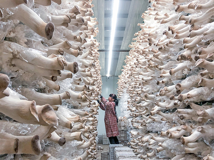 11月25日,在思禮鎮(zhèn)北姚村康鑫食用菌合作社,工人正在采摘杏鮑菇。