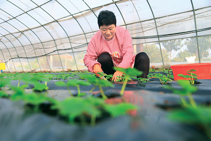 日前,在梨林鎮(zhèn)的一家草莓大棚內(nèi),工人在管理草莓苗。每逢冬季,是種植大棚草莓的高峰期,工人忙著管理、施肥,促進(jìn)苗齊苗壯。李浩 劉培琳 攝