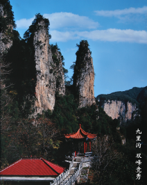 九里溝風(fēng)景名勝區(qū)位于濟(jì)源市西北部思禮鎮(zhèn)境內(nèi),距市區(qū)15公里,總面積96平方公里,是王屋山世界地質(zhì)公園和王屋山國(guó)家風(fēng)景名勝區(qū)的重要組成部分,也是中國(guó)作家協(xié)會(huì)、中原攝影家協(xié)會(huì)創(chuàng)作基地和大學(xué)生美術(shù)寫(xiě)生基地。九里溝因山稱(chēng)奇。這里的山峰,海拔都在1000米以上,崖壁陡峭且山形多變,山體較瘦,山與山之間深溝大壑之中往往有異峰突起,群山層次極為豐富,故有“自然盆景”之稱(chēng)。著名的禪堂山,主峰兩側(cè)有十峰突起,又稱(chēng)“十指峰”,峰峰如錐似筍,獨(dú)柱天地;和禪堂山南面對(duì)峙的是獨(dú)秀峰,山勢(shì)陡峭,巖崖嵯峨,草木蔥郁;北武當(dāng)山因其與南頂武當(dāng)山南北相峙而有其名,又因山形狀如金香爐又叫金爐頂;原大寨與禪堂山、金爐頂呈三足鼎立之勢(shì)。原大寨山形渾圓,地勢(shì)險(xiǎn)要,有“一夫當(dāng)關(guān),萬(wàn)夫莫開(kāi)”之險(xiǎn)。20世紀(jì)30年代黨繼新等領(lǐng)導(dǎo)沁濟(jì)武裝暴動(dòng)后,率領(lǐng)游擊隊(duì)在此駐扎。1983年列為市級(jí)文物保護(hù)單位?! ?/p>