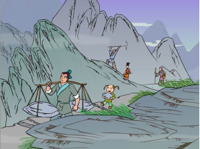 老愚公為啥要盤山?因為王屋山就堵在他家門口,出門就碰到王屋嶺。別啥不說,僅吃水就是個大難題,得轉(zhuǎn)到山東邊,再下一道溝,到一條小河里去擔。爬上爬下,挑一擔水得半天時間,老愚公就想把王屋山劈開,在他家門口修條路,來往擔水,弄啥都方便。