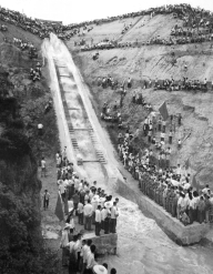 六七十年代,濟源人民在毛主席“愚公移山改造中國”偉大號召的鼓舞下,進行大規(guī)模水利建設(shè),一萬多名民工戰(zhàn)斗在太行、王屋山上,修建“引沁濟蟒”工程。先后劈掉山頭320座,完成了全長101公里的總干渠和118.6公里的支干渠,興建中小型水庫37座,蓄水池200座,提灌站156座,使平原地區(qū)和部分山嶺區(qū)的近40萬畝土地告別干旱,為濟源農(nóng)業(yè)的持續(xù)增產(chǎn)豐收,打下堅實的基礎(chǔ),同時為濟源各項社會事業(yè)發(fā)展提供了穩(wěn)定保障。此后,又在王屋山區(qū)修建了鰲背山水庫、天壇山水庫和王屋山水庫,有效地改善了山區(qū)水利條件?! ?/p>