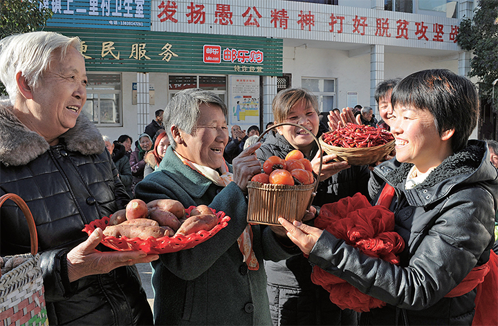 12月29日,上二里村的幾位脫貧戶農(nóng)民爭相讓駐村第一書記張姣姣品嘗土特產(chǎn)品。