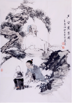 第一部分寫孟諫議寄新茶,此至精至好之茶,價埒黃金之珍貴。孟諫議,即孟簡,官至諫議大夫。公元811年,孟簡出任江蘇常州刺史。當盧仝接到孟諫議用“白絹斜封三道印”的新茶,受寵若驚。而這種新茶,又是古時屬常州府管轄產(chǎn)于宜興的“天子須嘗陽羨茶”,是唐代朝廷指定的貢茶。盧仝煎茶思友,從茶之產(chǎn)地由來到感受一一道來。 “新年入山里”、“便到山人家”、“柴門反關(guān)”等,表現(xiàn)出盧仝的清介之節(jié),有清寂高雅的精神生活追求。茶非俗客,即使“柴門反關(guān)”,也需“紗帽籠頭”,衣觀整潔,以此對潔凈之茶禮敬,保有一顆孤傲而高貴之心。正因如此,盧仝的形象并未因身居破舊柴門所削弱,相反,柴門形象更為高峻,成為后世茶人的偶像?! ?/p>