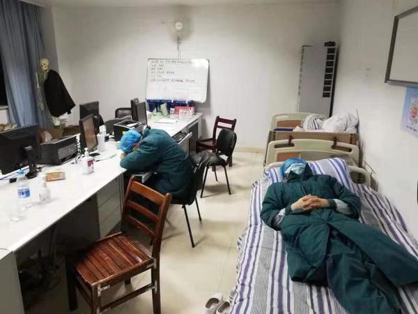 △由于工作強度大,值班室的辦公桌、儲物間的平板床,都成了醫(yī)護人員們工作間隙稍作休息的場所。
