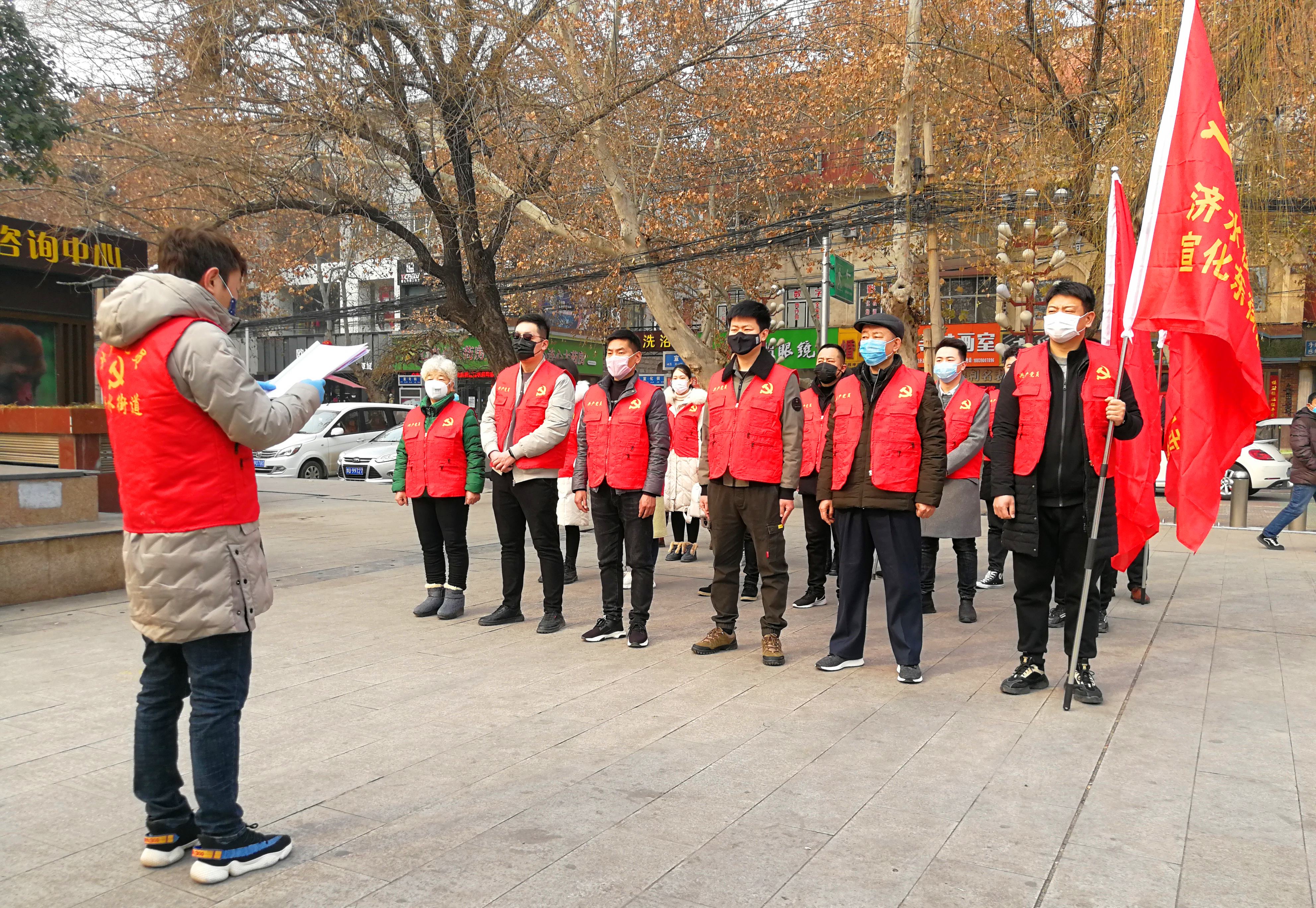 濟(jì)水街道成立疫情防控臨時(shí)黨支部,發(fā)動(dòng)黨員全面參與檢測(cè)點(diǎn)值班。 李芳芳 攝
