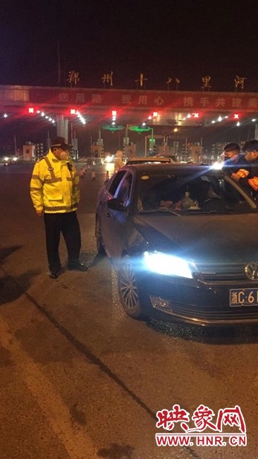 1月25日(正月初一)下午5時(shí)許至次日,臧軍率先到卡口執(zhí)勤,和民警一起在西南繞城高速十八里河站指揮入鄭車輛有序通行,引導(dǎo)司機(jī)和乘客到體溫檢測(cè)點(diǎn),配合醫(yī)護(hù)工作人員進(jìn)行體溫測(cè)試,在寒風(fēng)中堅(jiān)守10多個(gè)小時(shí),登記排查車輛及行人,一夜未停,精神抖擻。