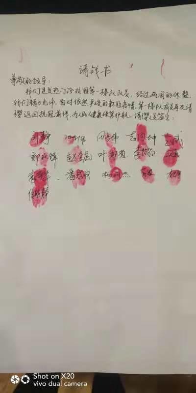我們于正月初三換防后,又在返回前線的請(qǐng)戰(zhàn)書(shū)上按下鮮紅的指紋。