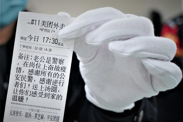 “湯圓還能送嗎?老板,今天元宵節(jié),我想點(diǎn)份外賣送給我老公和他的同事們,他們是鄭州東站派出所民警,在一線執(zhí)勤。”