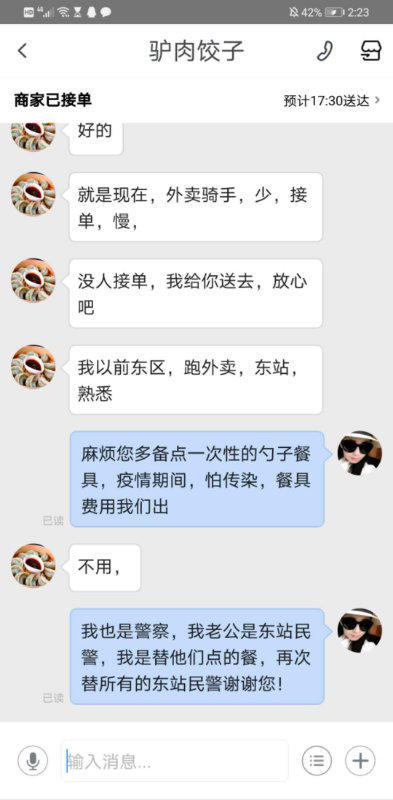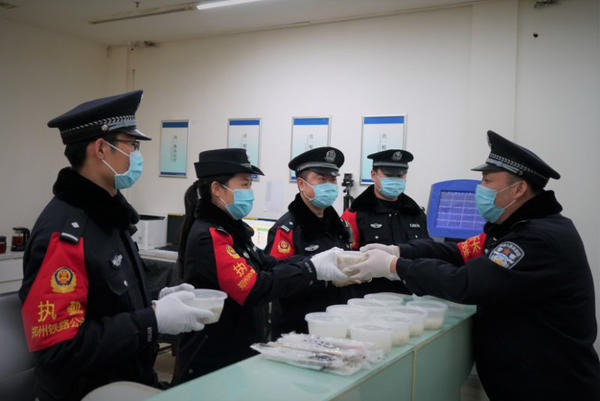 不一會(huì)兒,他就帶著“外賣湯圓”送到了鄭州東站派出所,100個(gè)湯圓被分成20小份送到派出所執(zhí)勤隊(duì)一線崗位。他說:“疫情發(fā)生以來,咱鄭州的公安民警堅(jiān)守在一線崗位,守護(hù)著這一城人,因?yàn)槟銈儫o私的奉獻(xiàn),才有了我們普通家庭的團(tuán)圓。這湯圓雖然不貴重,但它是我這個(gè)普通河南老鄉(xiāng)對(duì)我們?nèi)嗣窬斓淖鹁?,希望大家招呼好自己,一定不能一直干,不能倒下,因?yàn)槟銈兌际羌依锏捻斄褐?,一定不能出事,祝愿我們廣大民警節(jié)日快樂,闔家幸福。”