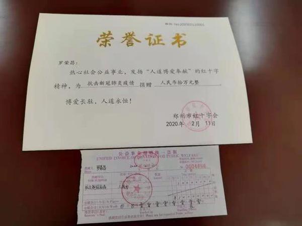 2月11日上午10時,鄭州市88歲的離休老干部羅榮昌,以個人名義通過鄭州市紅十字會捐款10萬元,用于鄭州市抗擊新冠肺炎疫情防控工作。這也是河南省紅十字系統(tǒng)向社會公布接收疫情防控捐贈方式以來,收到的個人單筆最高捐款。
